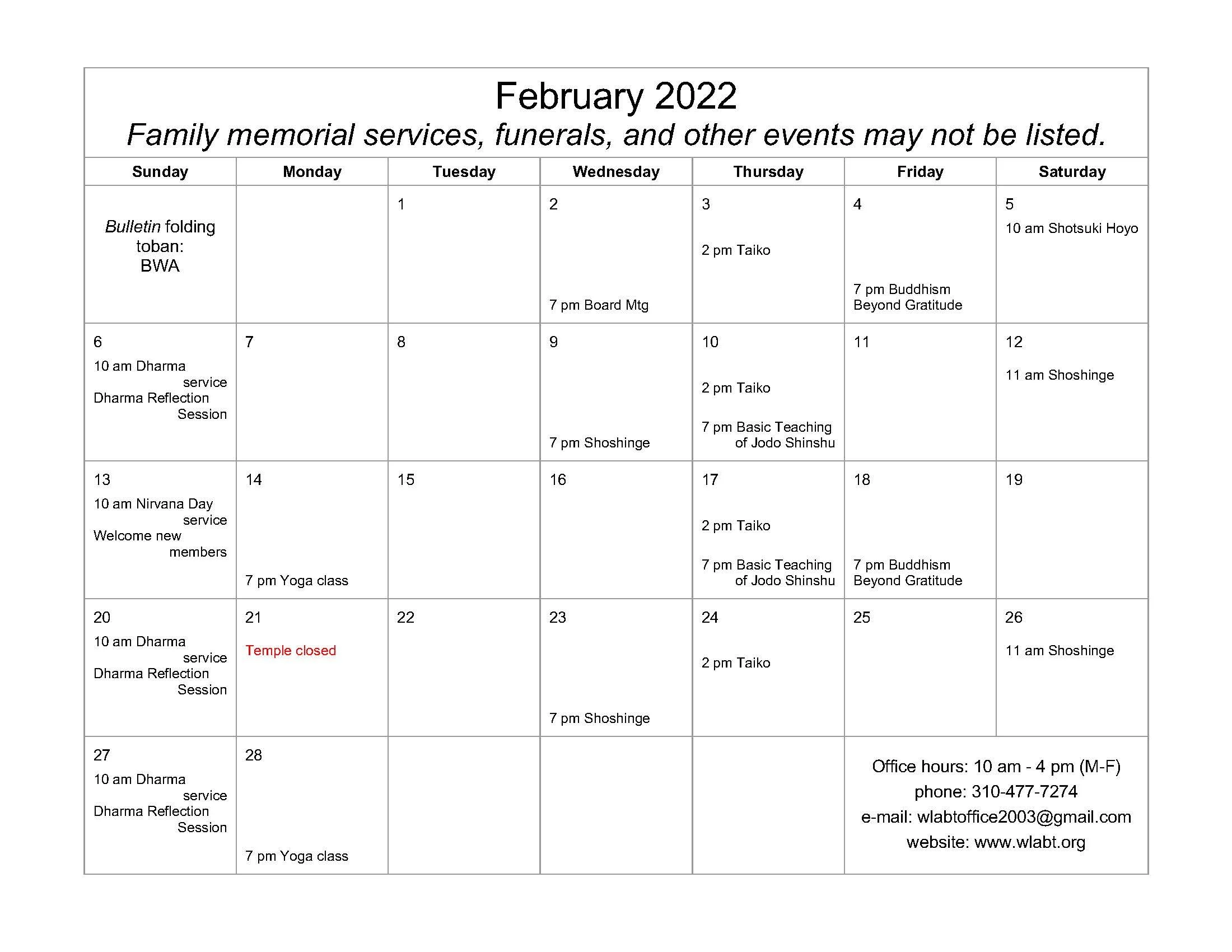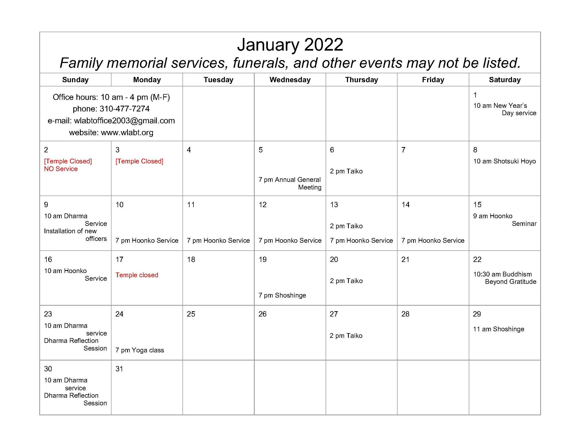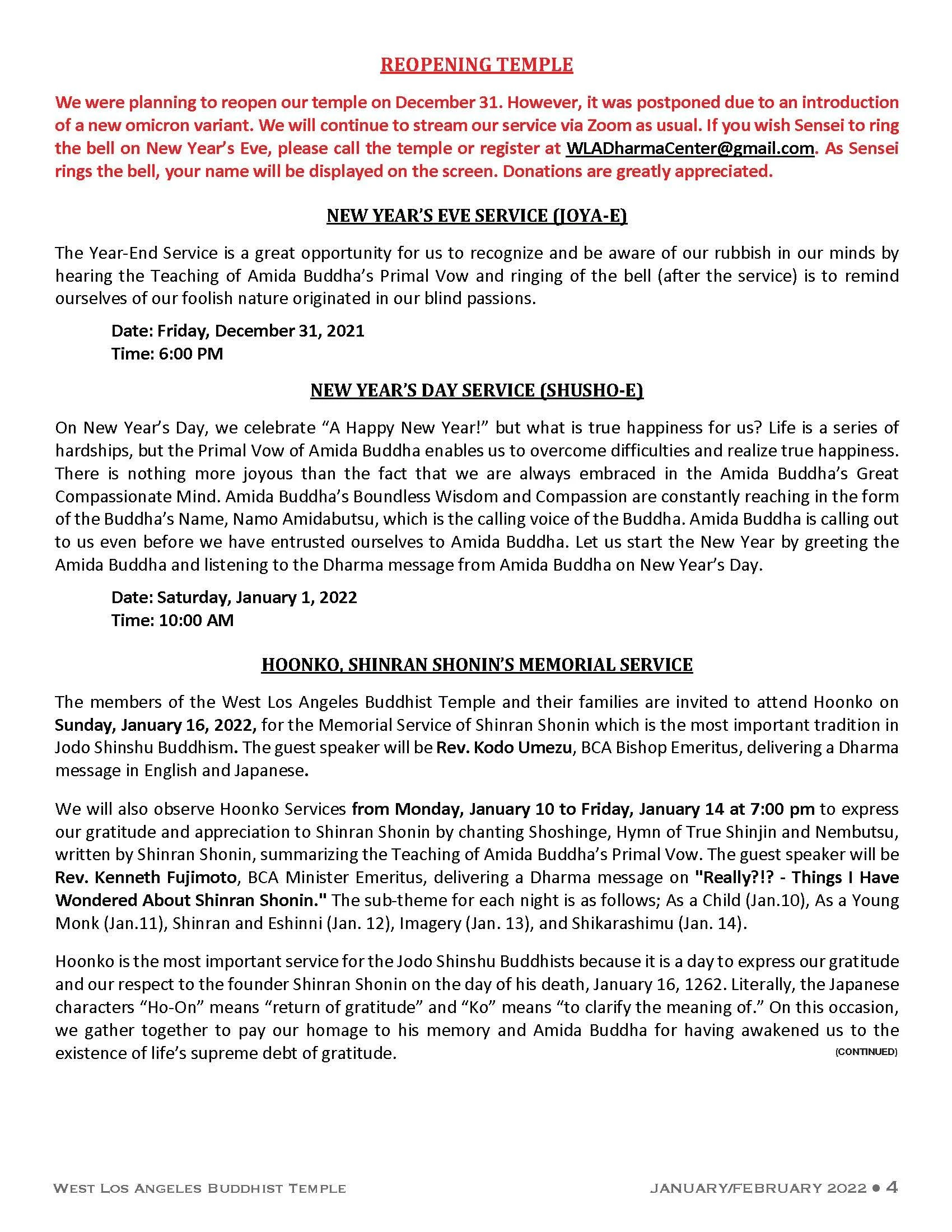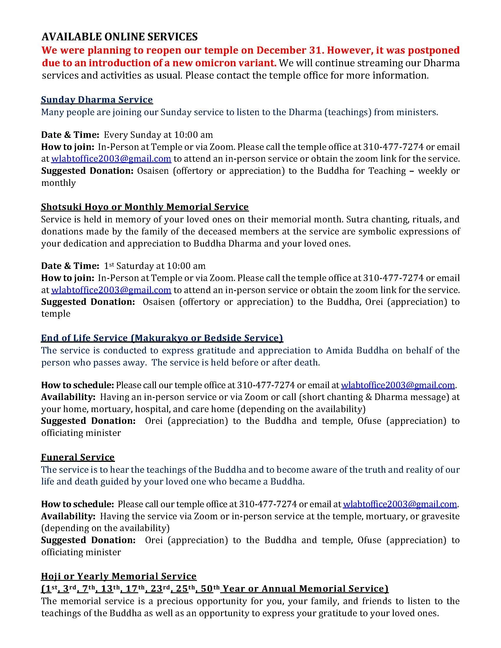 Dharma Services and Gatherings