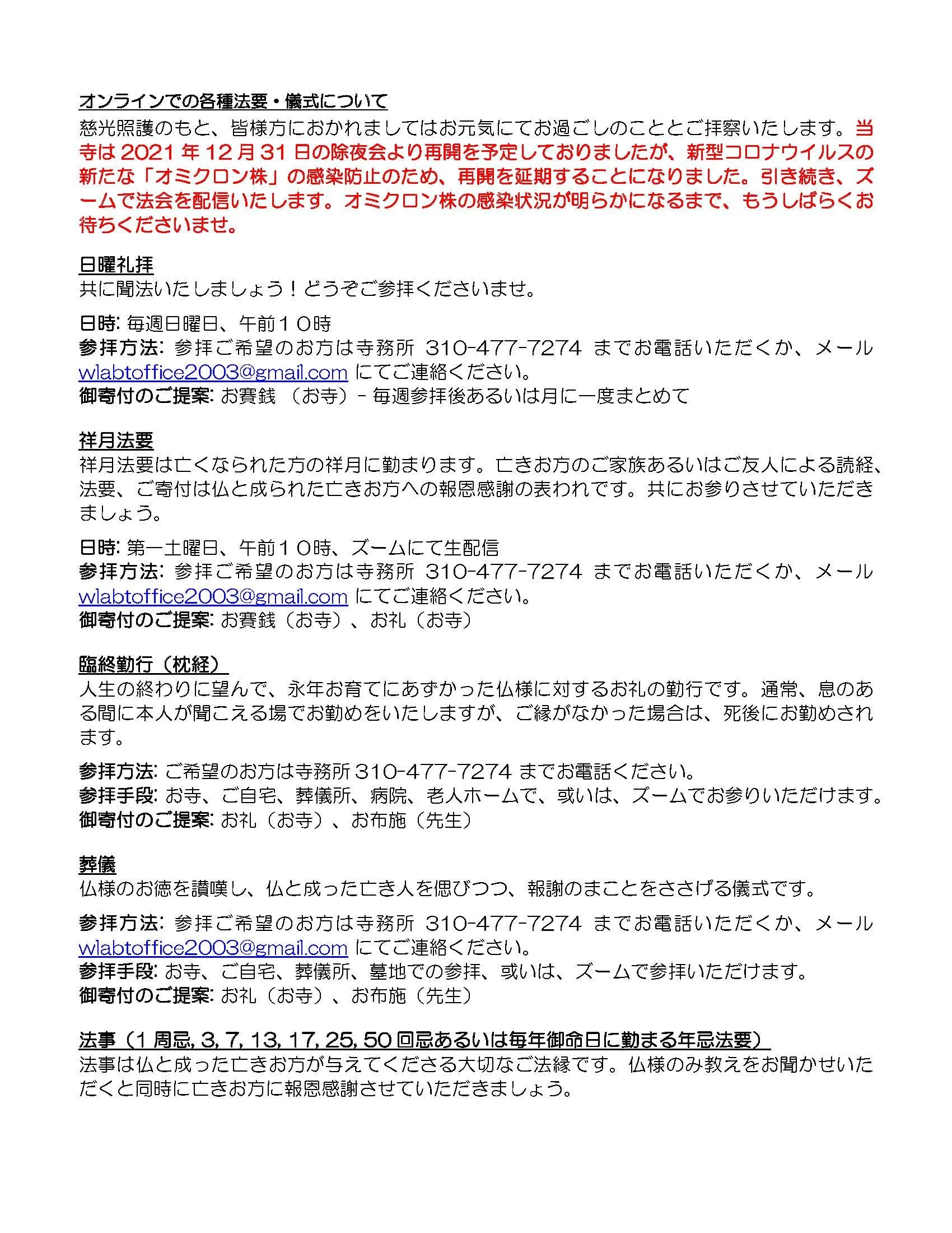 Dharma Services and Gatherings